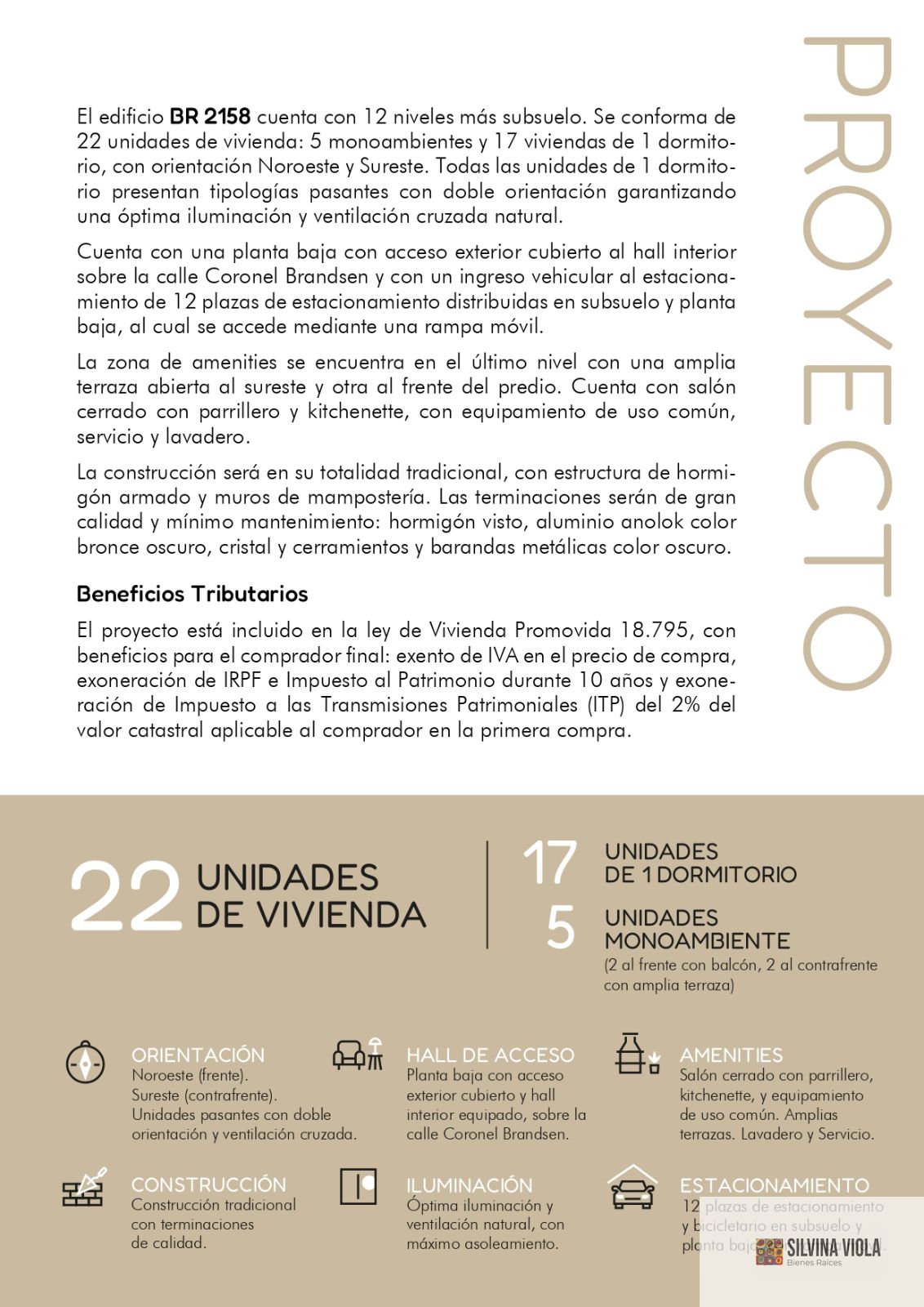 DEPARTAMENTO DE UN 1 DORMITORIO CON 2 TERRAZAS EN VENTA EN CORDÓN, MONTEVIDEO – EN POZO Departamento 1 dormitorio ubicado sobre la Calle Coronel Brandzen, en el barrio de Cordón, Montevideo. Situado en el piso 10 de un edificio de 12 pisos. Cuenta con una superficie total construida de 27,10 mts. internos y 6 exteriores : una terraza al frente (con desagüé para lavarropa) y una terraza al fondo. (Ver plano). Distribuido en living con cocina integrada al frente. Terraza al frente. 1 baño, 1 Dormitorio con armario completo y otro independiente para el calefon. Muros interiores en mampostería tradicional. Cocina integrada con muebles bajo mesada y aéreos. . Previsión eléctrica para desagüe para aire acondicionado.